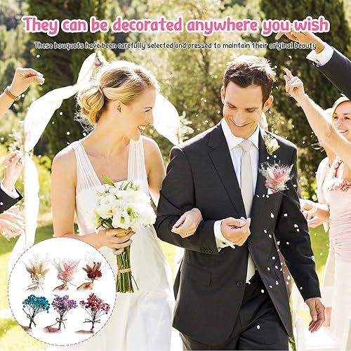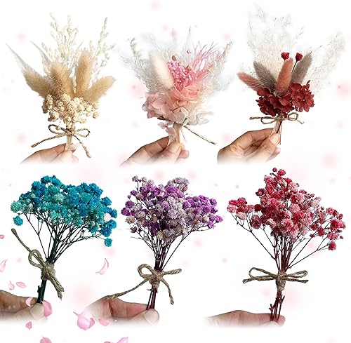 Mini Bouquets de Fleurs Séchées Naturelles Lot de 6 Fleurs Séchées Resine Epoxy Paquets de Fleurs séchées pour Petits Cadres Photo, Bricolage,Scrapbook Cadre Photo Décoration Nail Art Artisanat