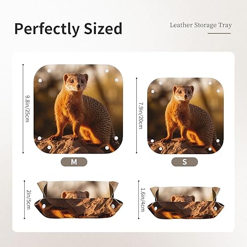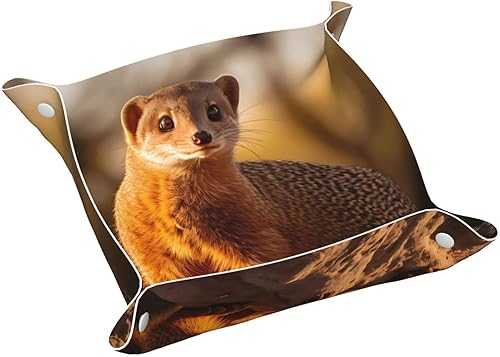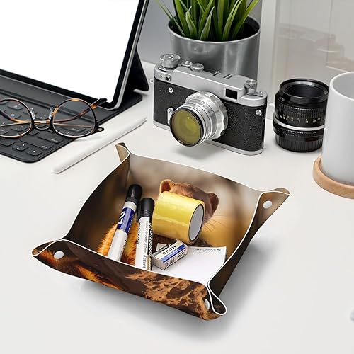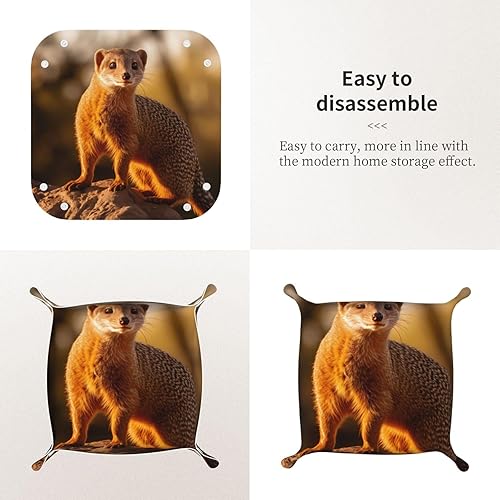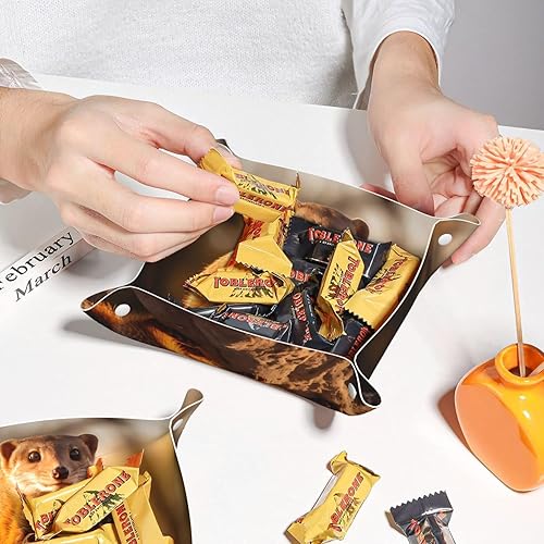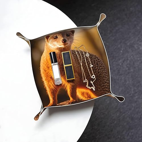 WZYWHJ Plateau de rangement en cuir pour table de chevet, bureau, coiffeuse et plus encore – Facile à nettoyer – Imprimé suricate moyen