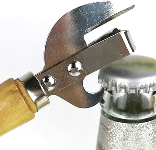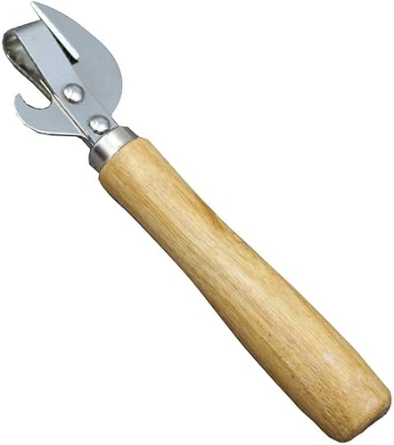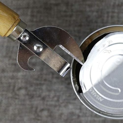 Ouvre-boîte manuel sûr en métal avec poignée en bois - Outil de cuisine professionnel ergonomique en acier