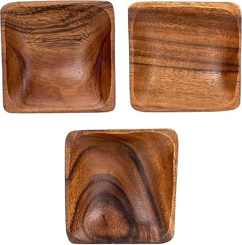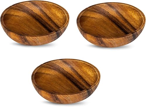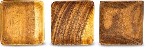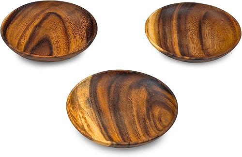 levandeo Lot de 3 assiettes rondes en bois d'acacia 10 x 2,5 cm