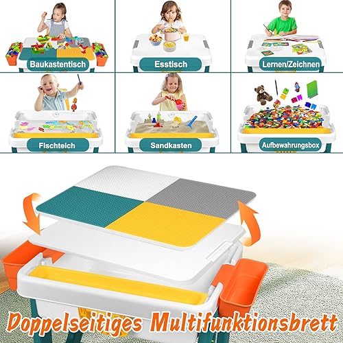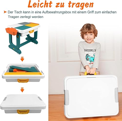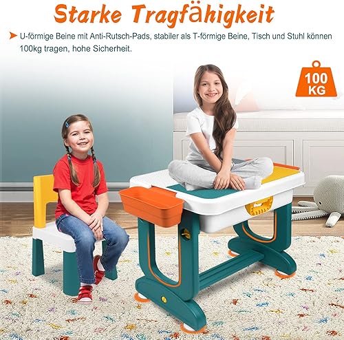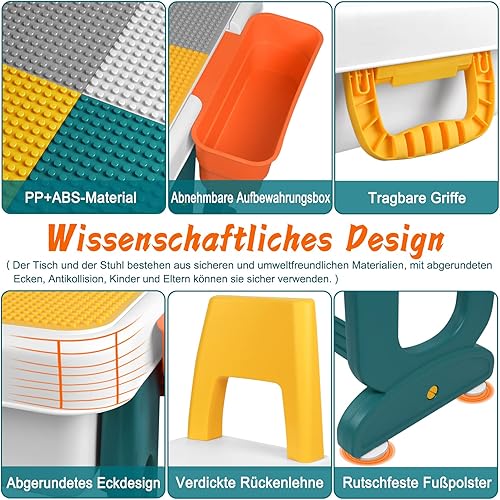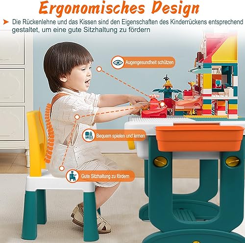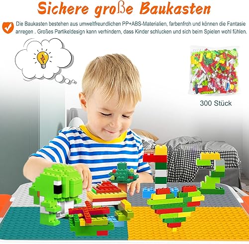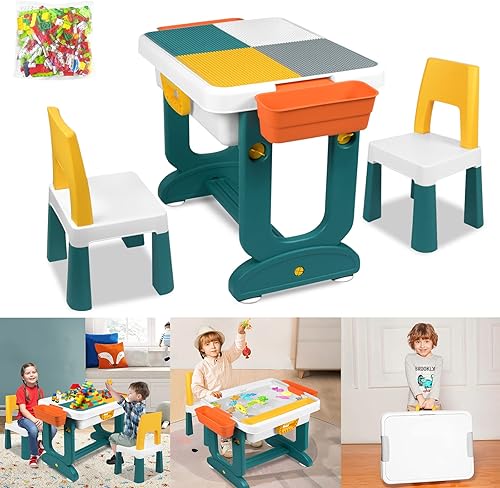 JNGLGO Ensemble de Table pour Enfant avec 2 Chaises, Table d'activités pour Enfants avec 300 Blocs de Construction, Multifonctions pour Enfants Briques de Construction Table