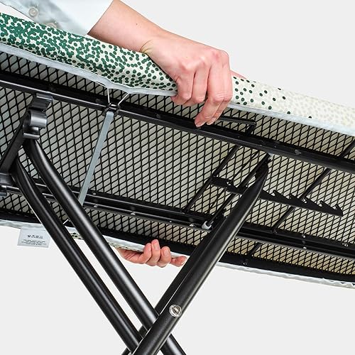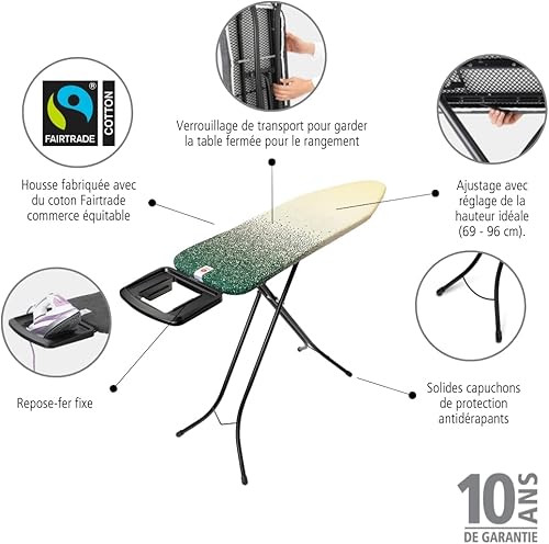 Brabantia - Table à Repasser B - Repose-Fer Réglable - Hauteur Réglable - Pieds Antidérapants - Housse en Coton 100 pour Cent équitable avec Couche de Mousse - Pliable - New Dawn - 124x38cm