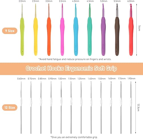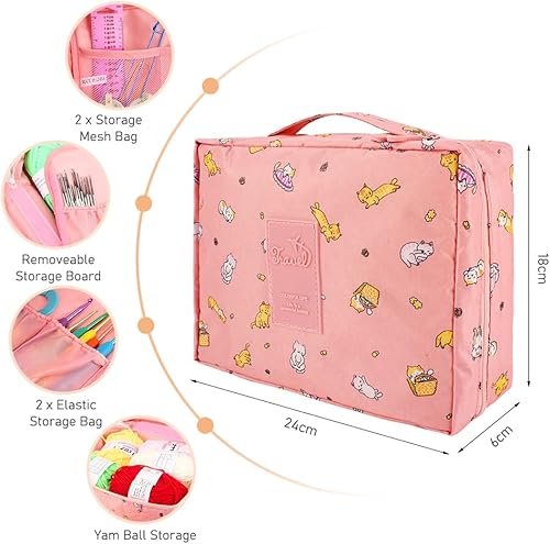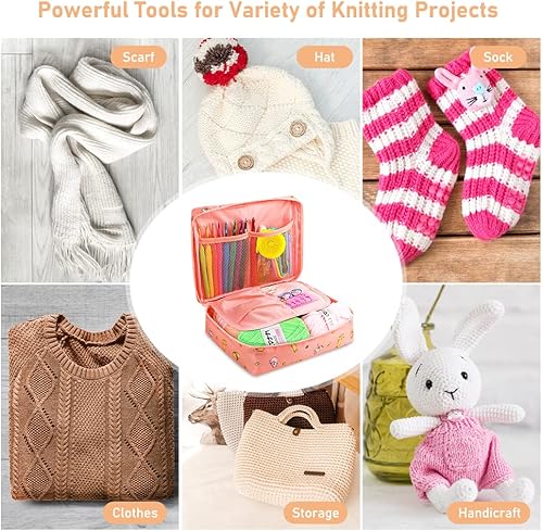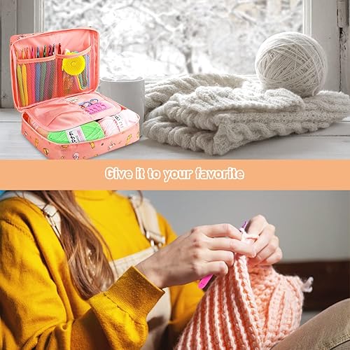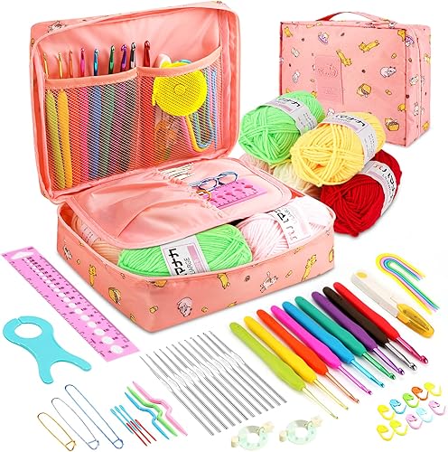 Kits de Crochet Ergonomique pour Adultes Débutants pour le Crochet Comprenant des Aiguille a Tricoter de 0,6 mm à 6,0 mm, Laine, Ciseaux, Sac Rose