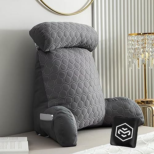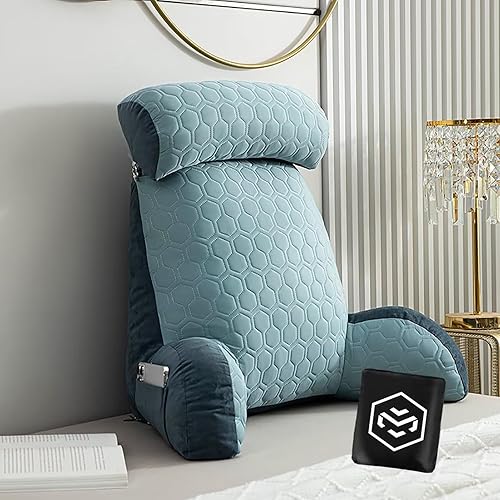 Coussin Dorsal Lit et Canapé- Coussin de Lecture avec Accoudoirs - Coussin Support Lombaire- Coussin de Canapé avec Tour Cou Amovible - Coussin Dos Lit avec Housse Lavable