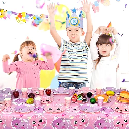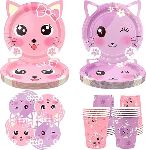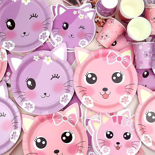 Ensemble de fournitures de fête d'anniversaire pour chat comprenant assiettes, serviettes, tasses pour enfants, décorations de fête de chat, pour 20 invités (style A)
