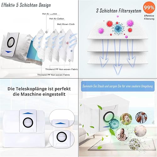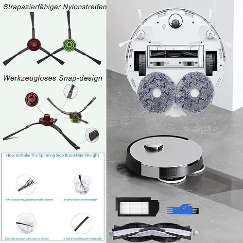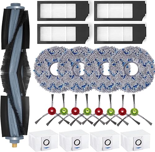 Asdazrxy Accessoire pour Ecovacs DEEBOT X1 Turbo/Omni, 21 Pièces Accessoire pour Ecovacs DEEBOT X1 e Omni avec 1 Brosse Principale, 8 Brosses Latérales, 4 Filtres, 4 Sacs, 4 Chiffons Serpillères
