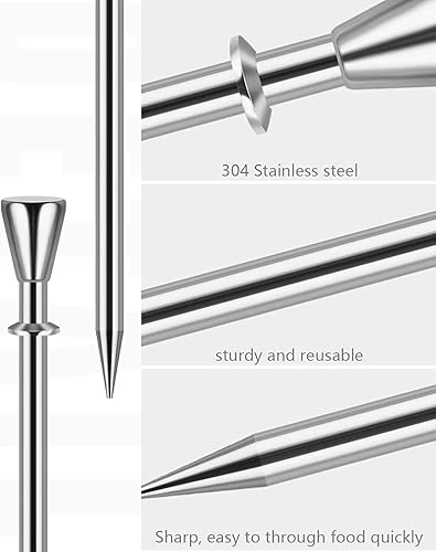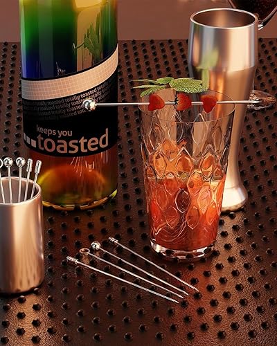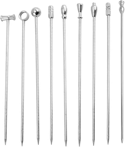 TOZBLEU Pics à cocktail,9 Pièces Pics à cocktail en acier inoxydable, Bâtonnets à Cocktail, Réutilisable Métal Cure Dents Brochettes pour Bar, Grillades, Snacks, Finger Food, Bâtonnets de Fruits