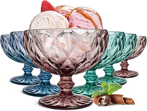 Sendez Lot de 6 coupes à glace colorées de 300 ml - Verres à dessert - Verres à cocktail - Verres à martini