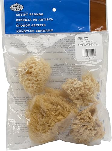 Royal Brush Natural Ocean Artist Éponges 4/Pkg-3 Laine et 1 Jumbo, Autre, Multicolore, 7,51 x 22,52 x 23,92 cm
