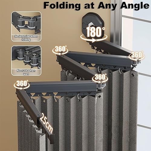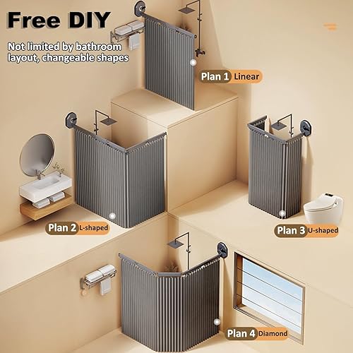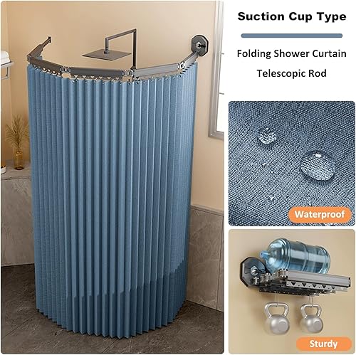 Rideau de Douche Anti Moisissure Pliable, Barre de Douche à Angle Réglable/Extensible sans Perçage, Tissu en Lin, Rideau Douche Lavable en Machine, Imperméable/Rangement Invisible(Blanc,172 cm+25 cm)