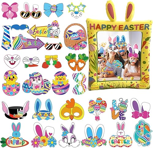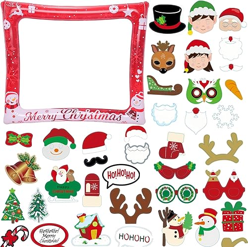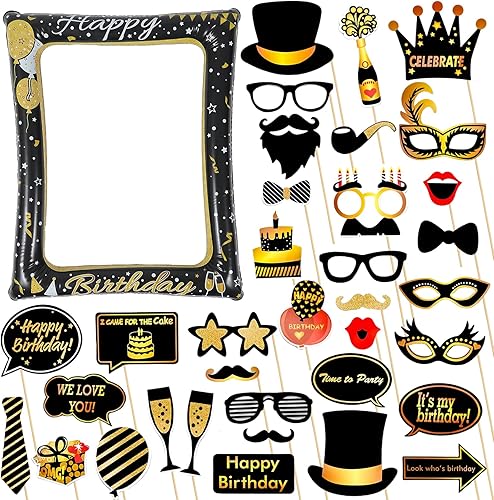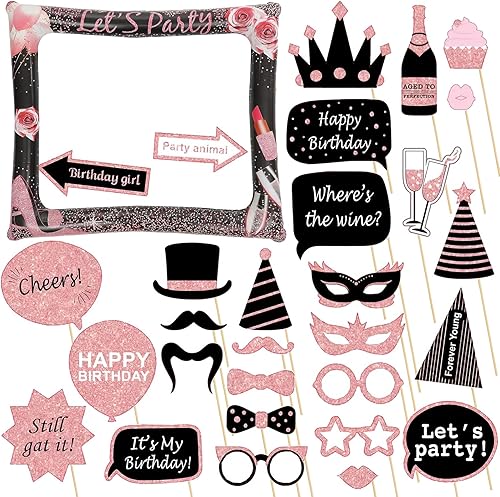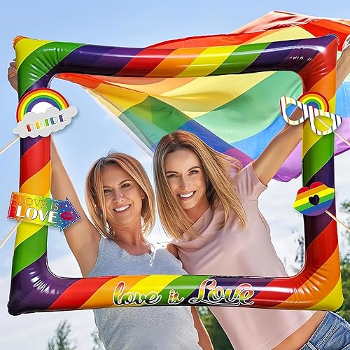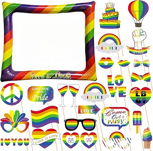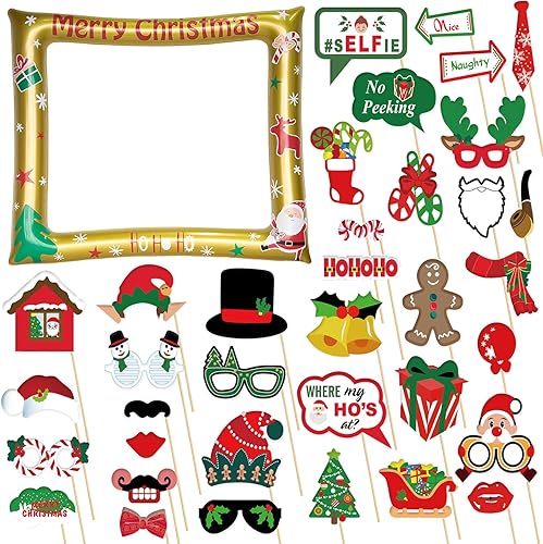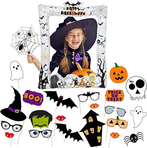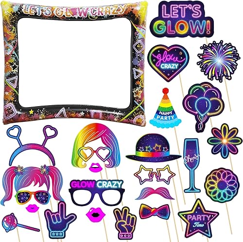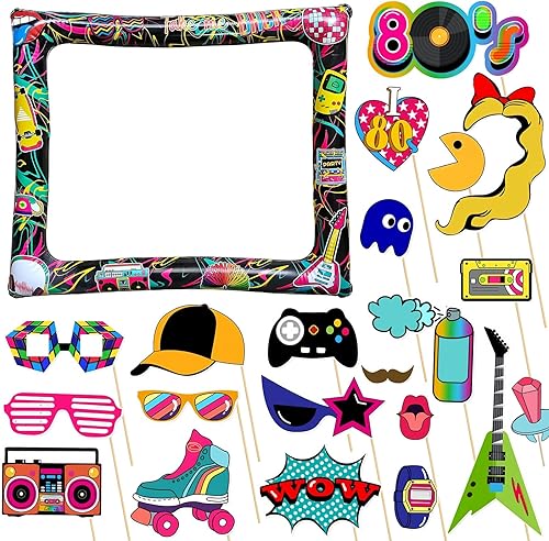 Cadre gonflable pour photomaton des années 80 avec 21 accessoires – Kit d'accessoires de fête gonflables géants pour les années 80, décorations hippie disco