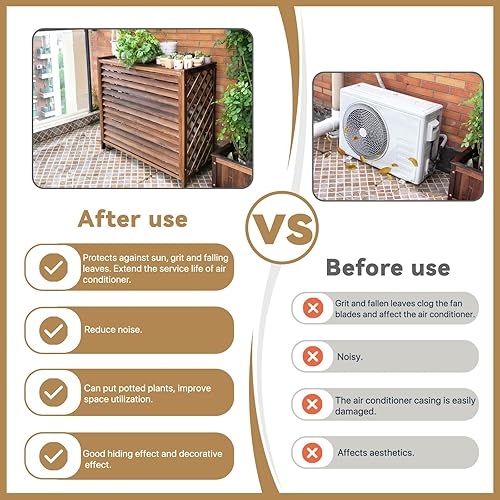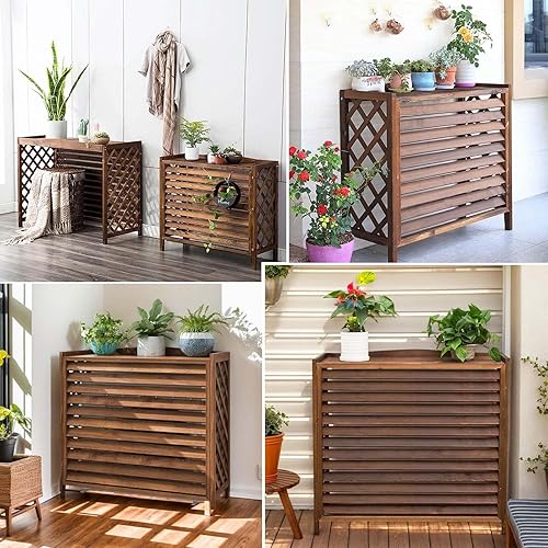 Marron Cache Climatiseur Extérieur Bois Cache Pompe A Chaleur Extérieur Bois Housse Pompe A Chaleur Extérieur Intempéries Support De Climatiseur En Bois Extérieur Support De Fleur Pour Jardin(86x35x80