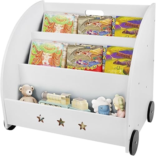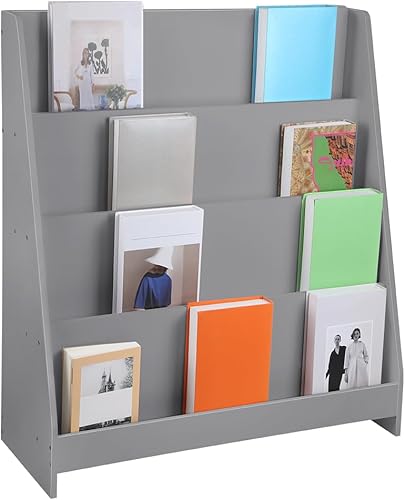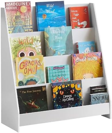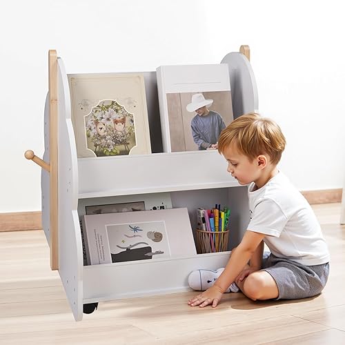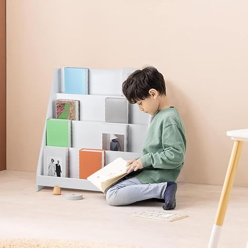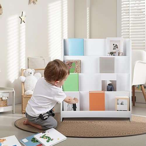 OHMG 6 Niveaux Bibliothèque Meuble de Rangement pour Enfant,Bibliotheque Murale,Etagere Livre et Meuble pour Chambre de Bebe,Bibliothèques pour Enfants avec Poche,Bois Naturel