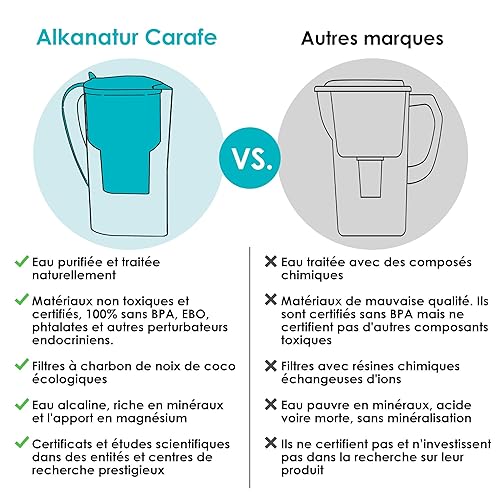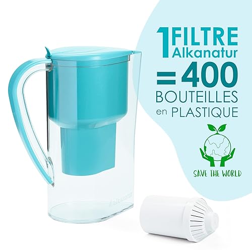 Carafe Filtrante Eau Alkanatur Drops – Eau Alcaline Pure Sans Déversements – Technologie Antioxydante Réduisant Chlore et Métaux Lourds – Capacité de 1.4L – Sans BPA et Écologique - Alkanatur