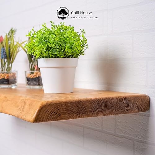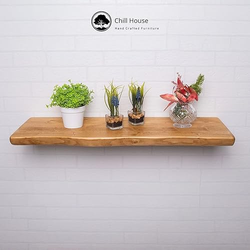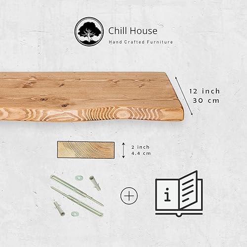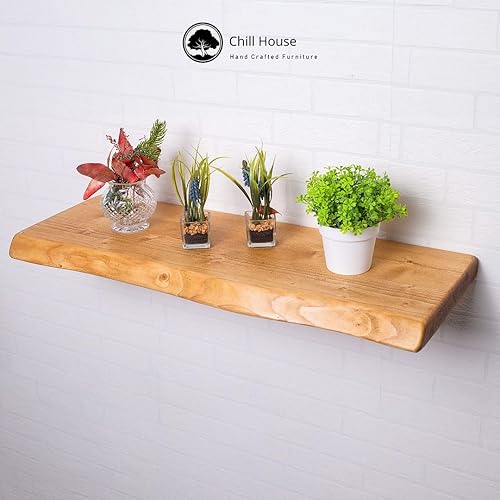 Chill House Wayne/Live Edge Étagère Flottante Rustique, étagère Murale en Bois 29x4.4cm, Teck, 70cm