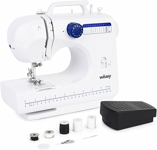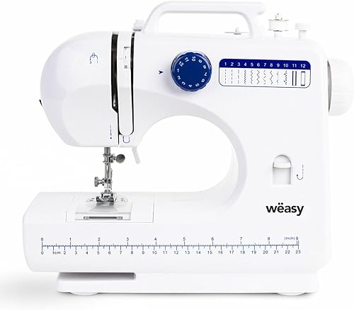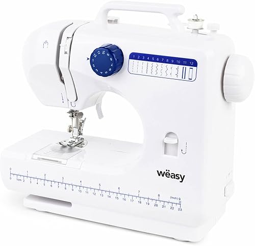 Wëasy Machine à Coudre Electronique 12 points SW45, Couture pour Débutant et Amateur, Portable, Multifonctions, Ajustable 2 vitesses, Manuelle ou à Pédale, Eclairage LED