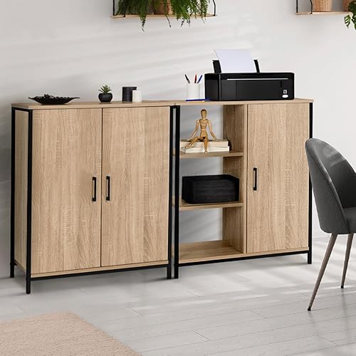 IDMarket - Armoire basse DETROIT 2 portes design industriel