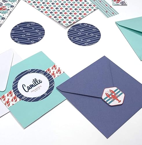 Clairefontaine 95815C - Bloc de 20 Feuilles à Motifs en Papier Cartonné 200g + Stickers Alphabet + Étiquettes à découper - Format A5 (14,8x21cm) – Papier Scrapbooking Loisirs Créatifs - Grand large