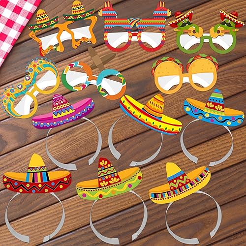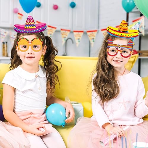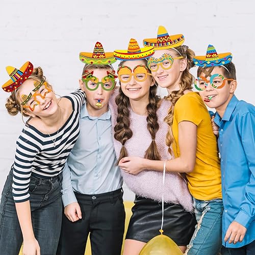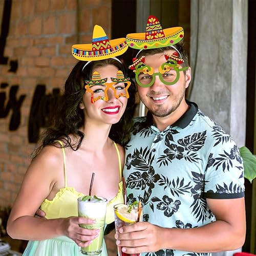 Lets Joy 6 Pièces Chapeaux de Fête Sombrero, 6 Pièces Lunettes de Fête Hawaïennes, Sombrero Bandeau Mexicain, Cinco De Mayo Sombrero Mexicain Bandeaux Aloha Carnaval Accessoires