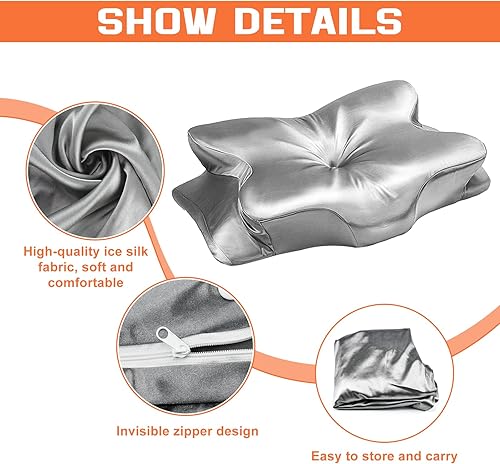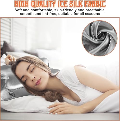 VGECEE Taie d'oreiller Cervicale, Oreiller Cervical Ergonomique, Taie d'oreiller en Satin, Taie Oreiller Orthopédique Cervicales en Soie pour Position Couchée et Latérale