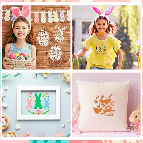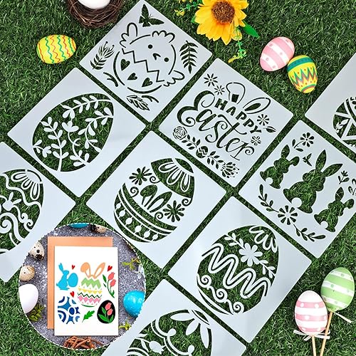 HOWAF 20 Pochoir Decoration Paques, Pochoir Lapin de Paques Deco Pochoir Oeufs de Paques Decoration Plastique Réutilisable Pochoirs pour Peinture Pochoir Enfant Décorations de Pâques Decoration