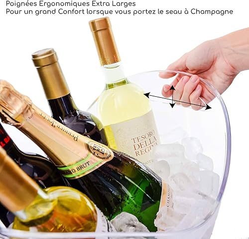 Générique Seau à Champagne 3 Bouteilles - pour Champagne, Seau à Glace - Transparent - Capacité 8 litres