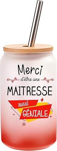 Verre Cocktail Merci Maitresse Géniale | Idée Cadeau Verre à Eau avec Paille