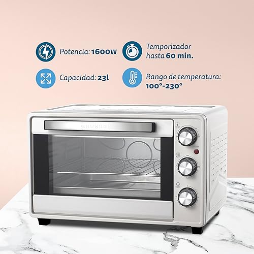 Grunkel - Four de table électrique multifonction de 23 litres avec une puissance de 1600 W, idéal pour pizzas et pain, modèle HR-23 Silver (argent)