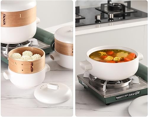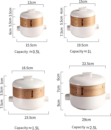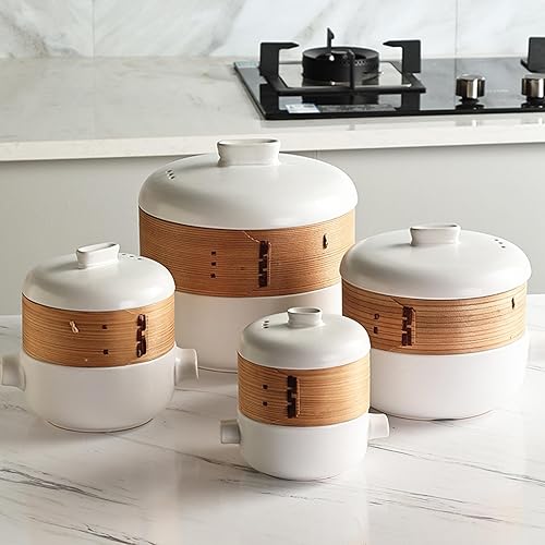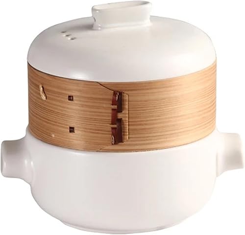 RSBFER Cocottes japonaises, cocotte en céramique, marmite à ragoût à Vapeur avec Panier Vapeur, antiadhésive, résistante à la Chaleur ,Blanc,2.5L