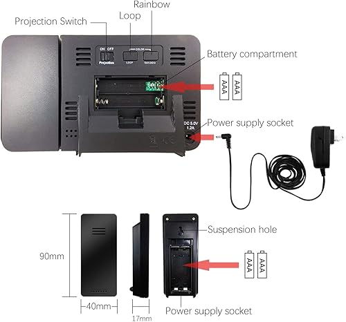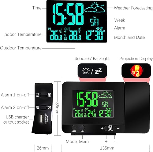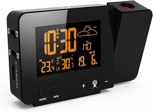 Réveil à Projection Plafond Heure,Horloge Projection Plafond Enfant et Murale,LCD Reveil Projecteur 180°,Luminosité Réglable à 4 Niveaux,Double Alarme,Snooze,Charge USB,12/24H