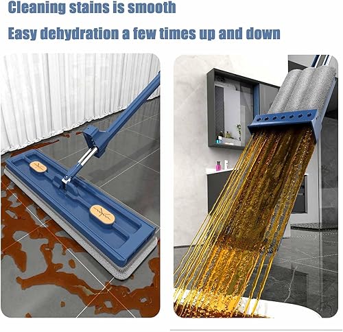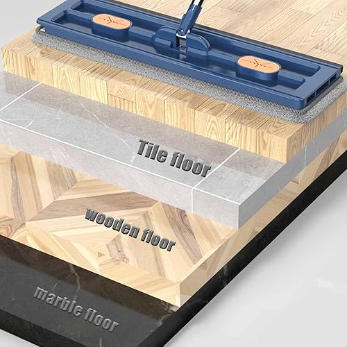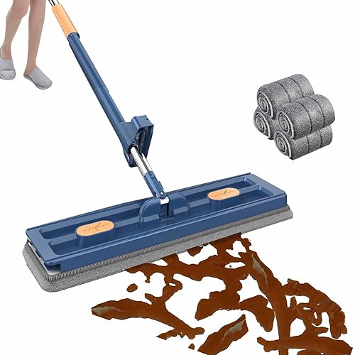 CLOUDEMO Roseionly Grande vadrouille Plate Roseionly Grande vadrouille Plate en Acier Inoxydable à Long Manche avec 6 tampons en Microfibre réutilisables, vadrouille Magique 360° (Blue)
