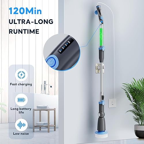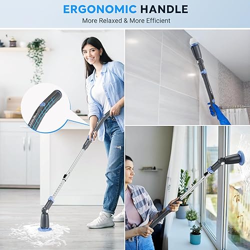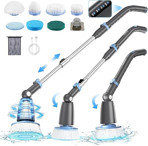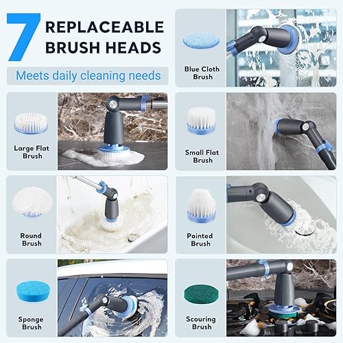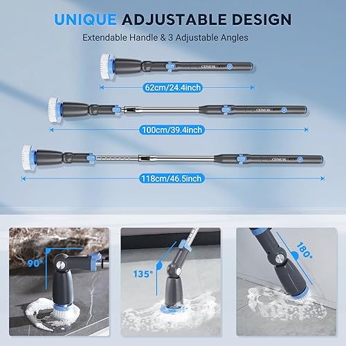 CEIMUIK Brosse Nettoyage Électrique Rotative Sans Fil - 7 Têtes, 3 Angles Réglables, Poignée Télescopique, 2 Vitesses - Pour Salle de Bains, Cuisine, Voiture