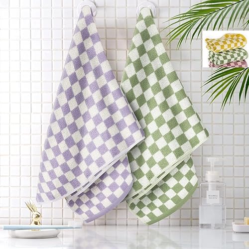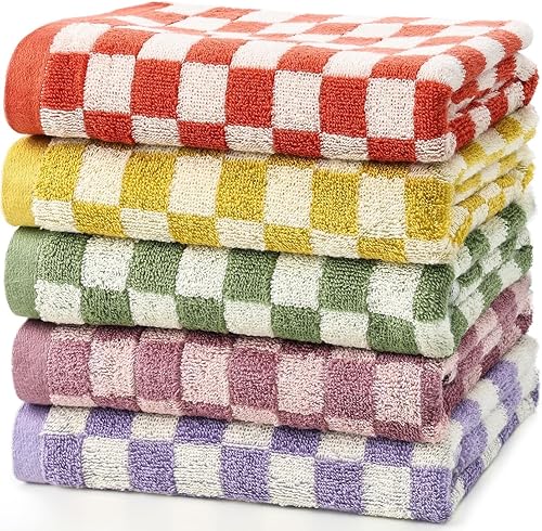 Johyzmpun Lot de 5 serviettes de bain à carreaux 100 % coton - Serviettes de bain douces et absorbantes pour salle de bain - 35 x 75 cm - Serviettes de visage mignonnes à motifs pour le spa, la salle
