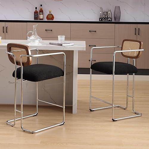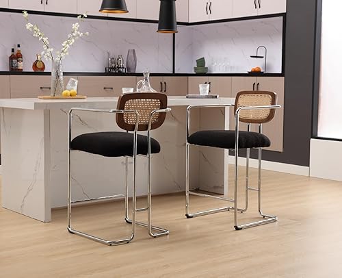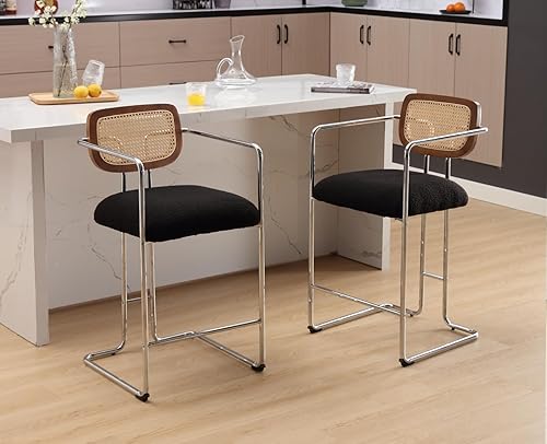 chairus Tabourets de Bar Lot de 2 Tabourets de Comptoir avec Pieds en Métal Chaise de Bar en Fausse Fourrure pour Cuisine, Îlot Central, Blanc