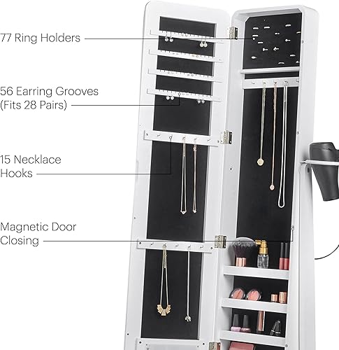Armoire à bijoux et maquillage sur pied avec miroir et lumières DEL par Beautify