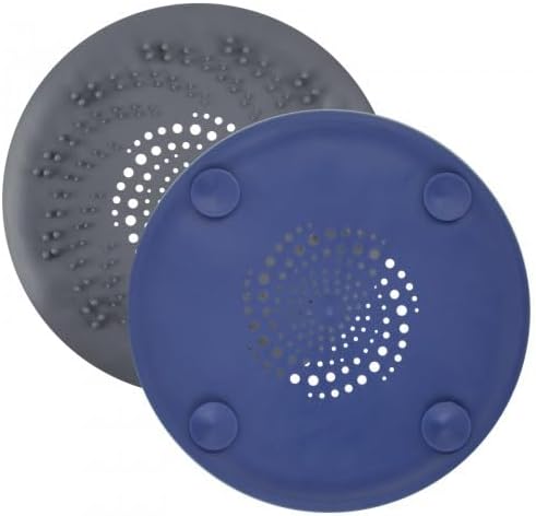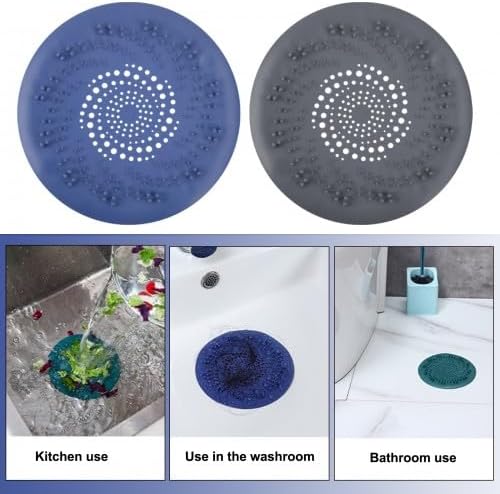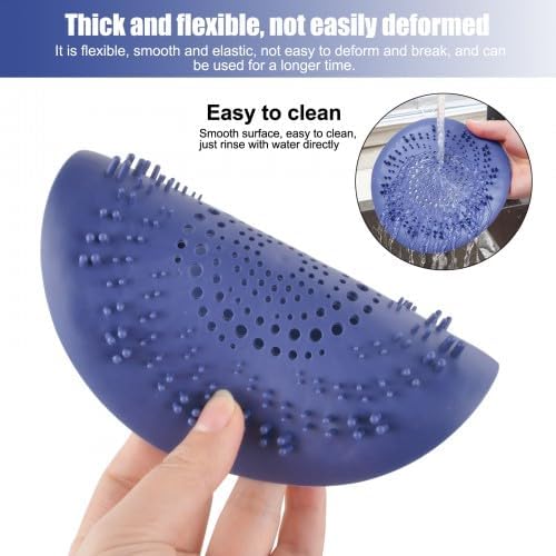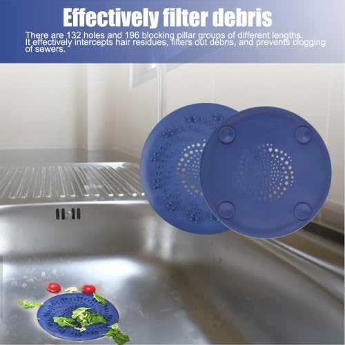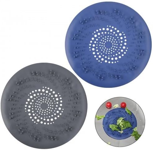 2 Pièces Filtre Cheveux Douche Silicone, Protection de Drain de Silicone, Filtre Evier de Cuisine, Filtre de Couverture Drain de Baignoire, Filtre à évier avec Ventouse de Cheveux (Bleu & Noir)