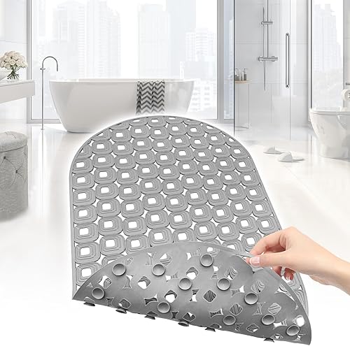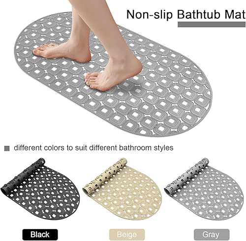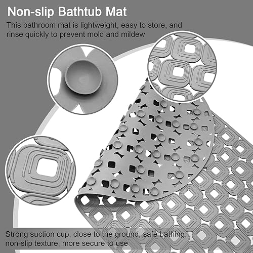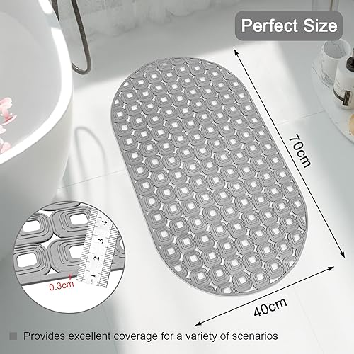 Tapis de bain antidérapant 40 x 70 cm - Sans BPA - Pour enfants et bébés - Avec ventouses - Avec trous de drainage - Gris