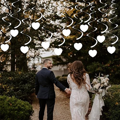 Iuhtrb Pack 30 Banderoles Tourbillon Suspendues À Cœur Coeur Blanc pour Le Mariage Romantique Décoration Plafond Fête Saint-Valentin