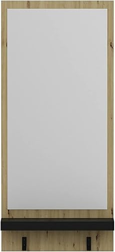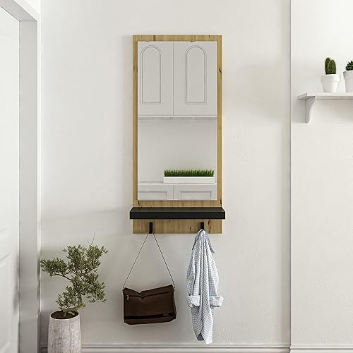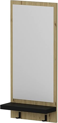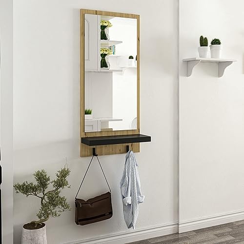 [en.casa] Portemanteau Mural avec Miroir Panneau de Vestiaire avec 2 Crochets Tablette de Rangement Panneau de Particules Plastique 90 x 45 x 16 cm Effet Bois Artisanal Noir