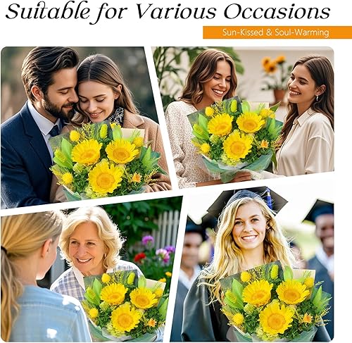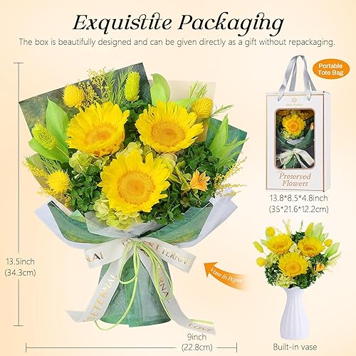 Bouquet de Tournesols avec Vase, Bouquet Éternel, Fleurs Préservées Réelles, Cadeaux pour Femme, Épouse, Petite Amie pour Son Anniversaire, Son Anniversaire de Mariage, La Fête des Mères