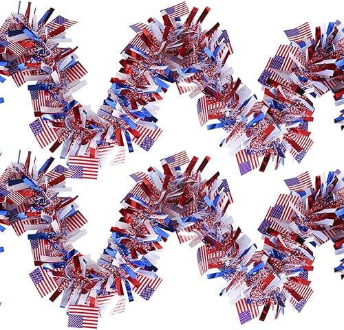 FSSTUD Lot de 4 guirlandes de drapeaux américains à suspendre pour sapin de Noël - Rouge, blanc, bleu - Guirlande murale pour intérieur et extérieur