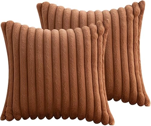FDEETY Lot de 2 Housses de Coussin en Peluche en Fausse Fourrure Décorative Douce à Rayures moelleuses pour Coussin de Chambre à Coucher de canapé 45 x 45 cm Rose