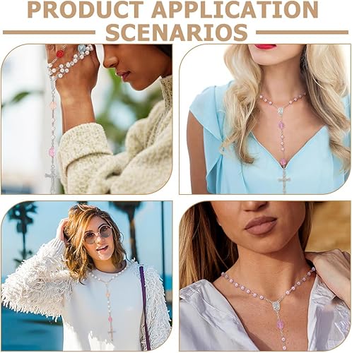 WEBEEDY 10 Ensemble Kit Bricolage Collier Chapelet Cross Charms Perles de Chapelet en verre Kit Chapelet Prière Kit Chapelet Pâques Kit Bijoux Chapelet (6 mm)