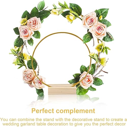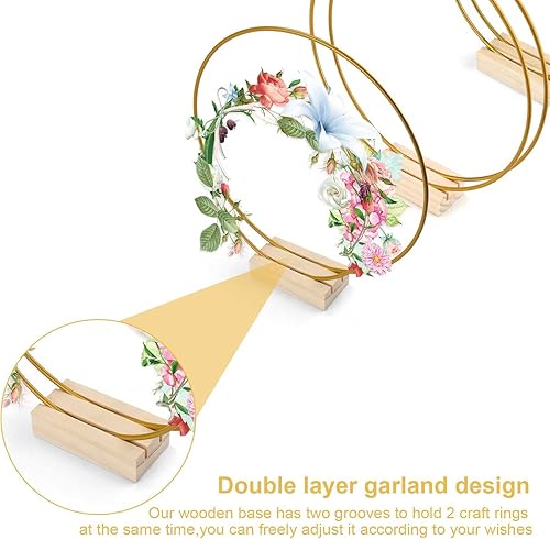 0XBIT Cerceau Floral Mariage, 3 Pièces Couche Double Cercles Floraux en Métal, Cerceaux en Métal Doré, avec Base en Bois, pour Guirlandes DIY et Décorations de Table de Mariage