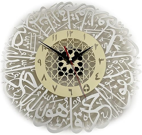 Enbebamd Calligraphie Arabe Horloge Murale Acrylique Mur Art Horloge Islamique Décoration pour la Pendaison de crémail