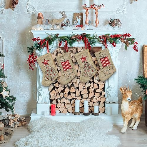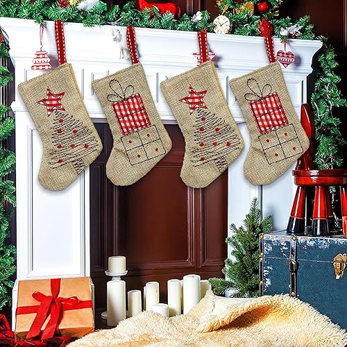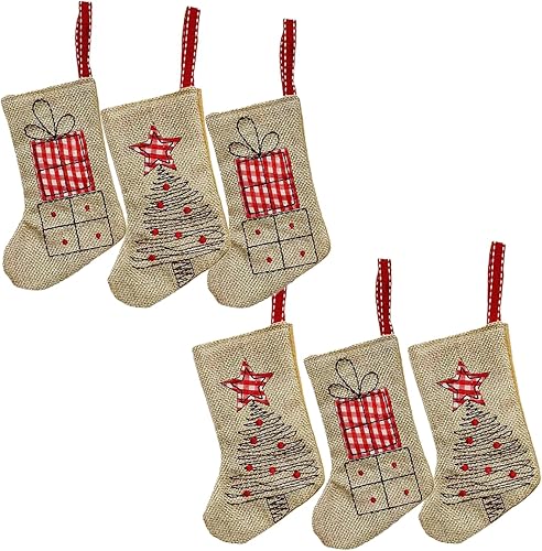 JINGTOPS Chaussettes de NoëL en Toile de Jute, Bottes de Père Noël à Remplir, Chaussette Noel A Suspendre Personnalisé,Xmas Sac Cadeau pour DéCoration Noel Cheminée, Jute, 14,5 Cm X 10 Cm (Lot de 6)