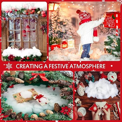 QXNDXQ Décor de Fausse Neige de Noël Neige Artificielle Fibre Neige Moelleuses Douces Décoration de Couverture de Neige Intérieur pour Village de Manteau d'hiver,Décoration de Noël (250g)