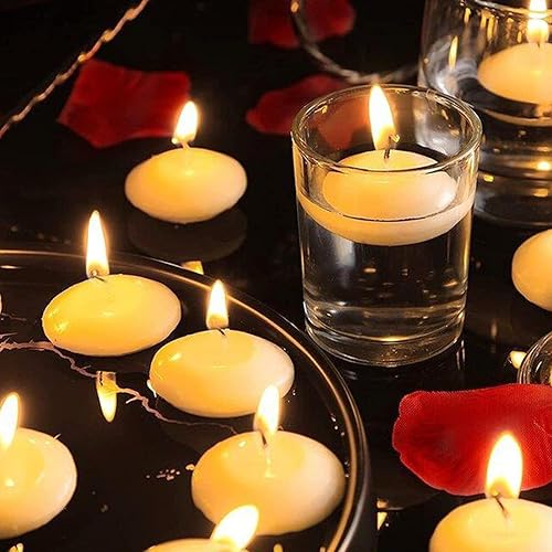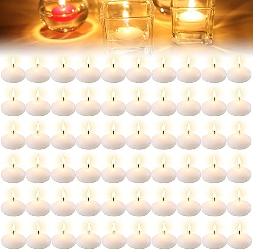 Leikurvo - Lot de 60 bougies flottantes blanches non parfumées - Bougies flottantes décoratives pour piscine, mariage, fête, dîner, centre de piscine et Noël