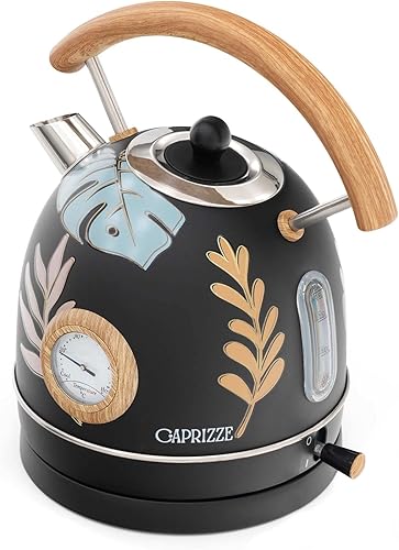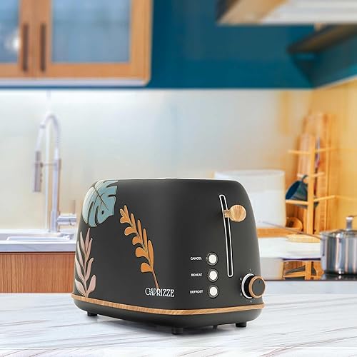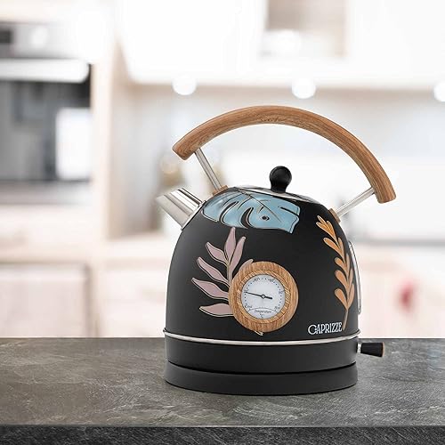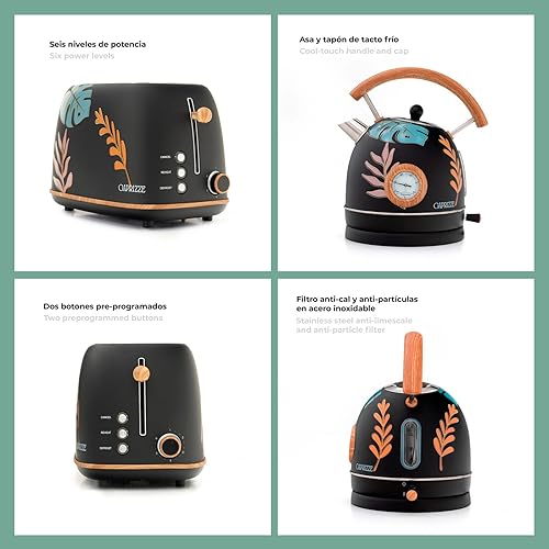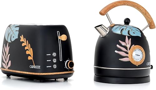 Pack Grille-Pain Caprizze Kaito avec Double Fente Extra Large et Bouilloire Nara Couleur Noir Mat Floral Design Rétro Vintage