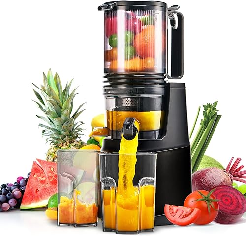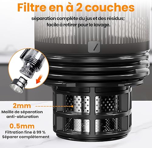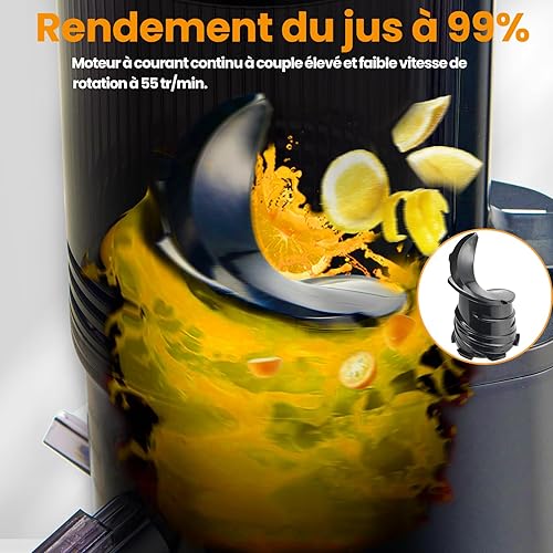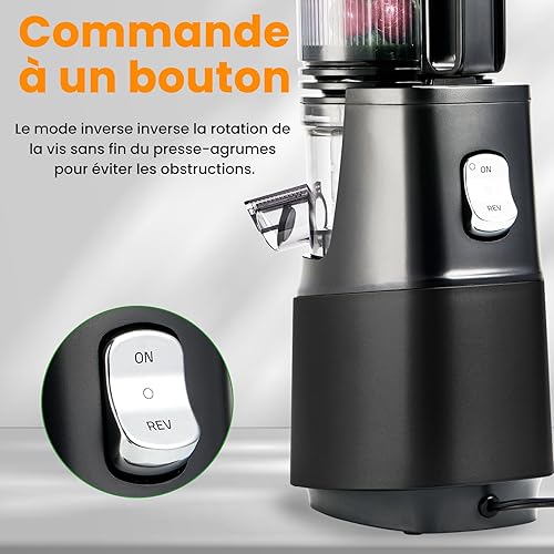 Extracteur de Jus de Fruits et Légumes, Ouverture de 13.5cm capacité de 2L Machine a Jus de Fruit, Slow Jucier Facile à installer (Noir)